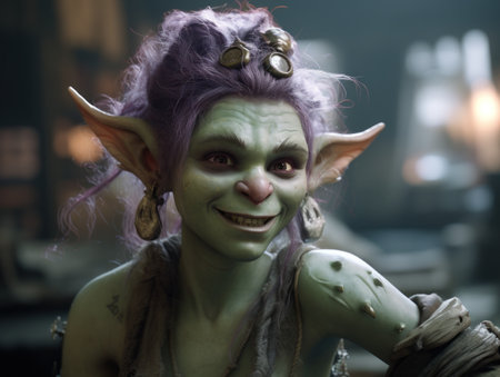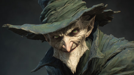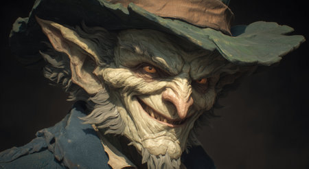 Mischievous goblin with an air of mystique on a transparent ba. AI generated. Vector icon