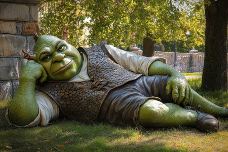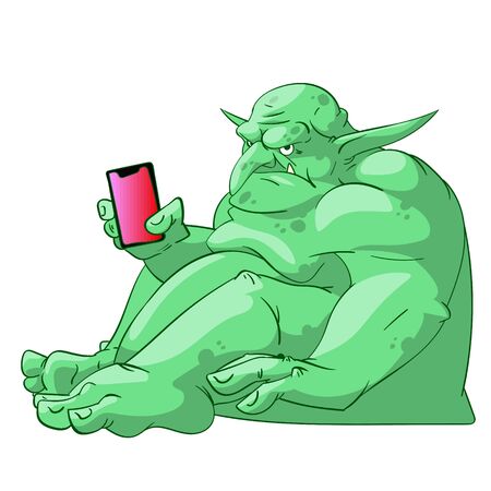 Colorful vector illustration of a big fat green and grumpy internet troll