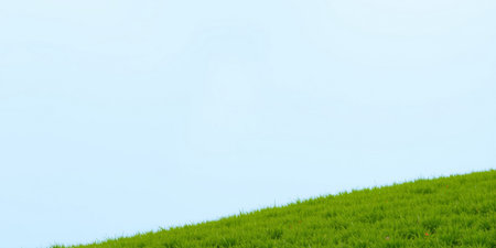 This image features a vibrant green grass hill under a clear blue sky, emphasizing the serene beauty of nature and the tranquility of outdoor spaces.