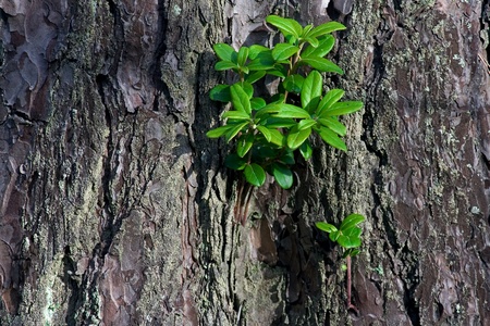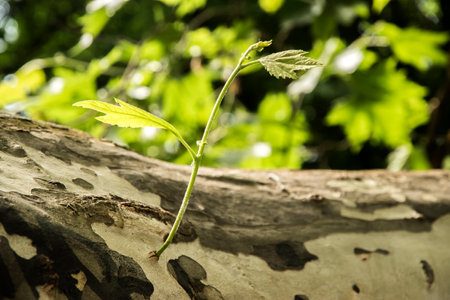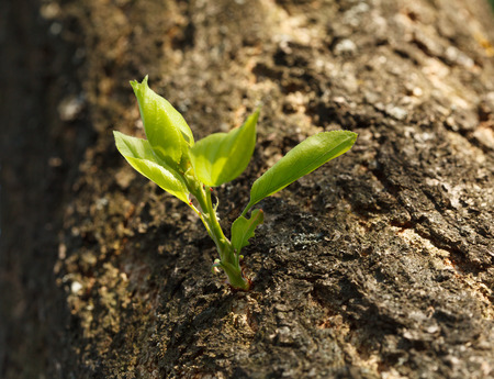 young sprout of a tree, new life makes its way on the trunk of a tree