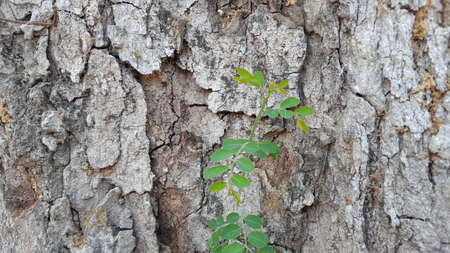 Background of new sprout twig over Linden Tree lime tree bark, Ludogorie, Bulgaria