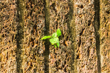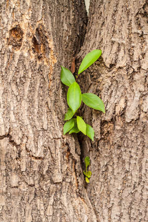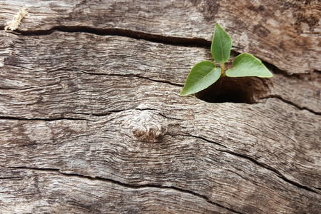 Strong and development as business and success concept small tree young plant growing up from old trunk
