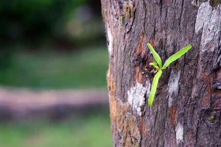 A strong seedling growing in the center trunk tree as a Concept of support building a future.. focus on new life future