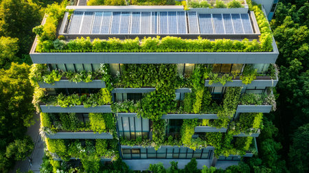 Eco-friendly architecture background with sustainable design elements. Great for green architecture, energy-efficient buildings, and smart cities.