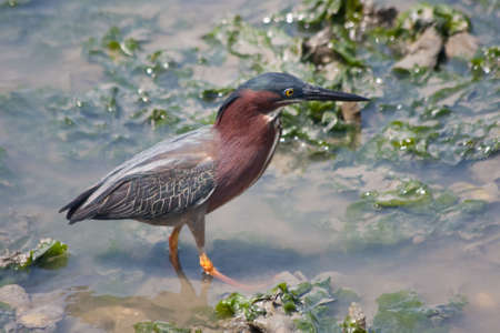 Little Green Heron Butorides virescens hunting in a lake in Maryland during the Summer