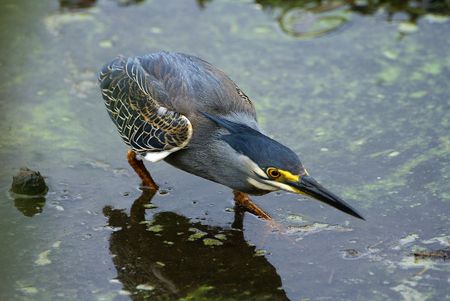 Green heron on the hunt. Filmed on the yucatan peninsula