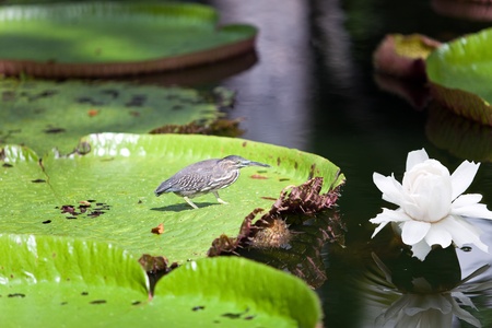 Bird on a leaf Victoria amazonica ( Victoria regia)