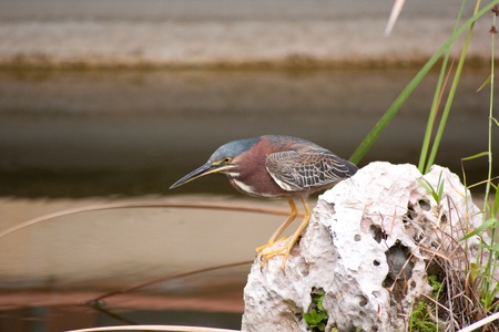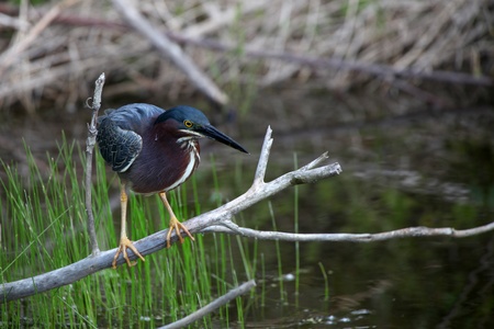Green-backed Heron perched on a branck on a lake in Virginia Beach, Va.