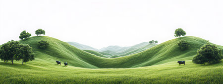 Rolling hills and gentle slopes showcase the beauty of verdant pastures in the landscape