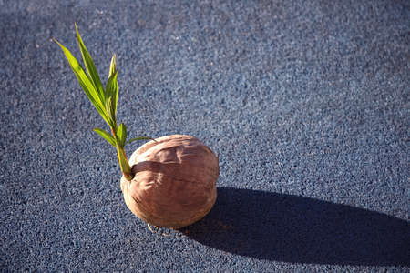 Miniature tree and seed growing inside a nutshell symbolizing sustainability