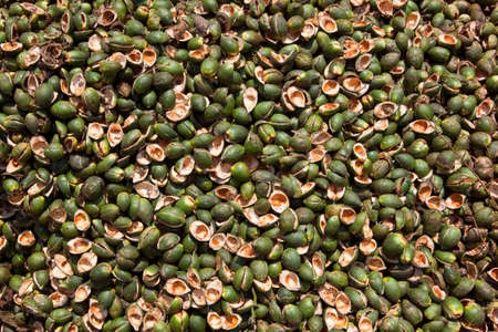 background image of green palm nut shells
