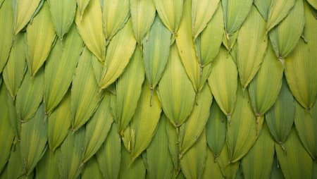 Green corn leaves. Closeup. Copyspace Topview background