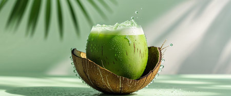 AI Generated. Refreshing Green Coconut Drink in Chilled Shell