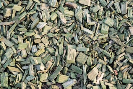 scattered painted green wood chips. abstraction.