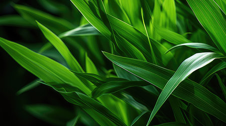 Fresh Green Leaves on Bamboo Mat : Generative AI