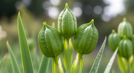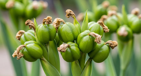 A stunning close-up image of fresh green buds nestled among stems, illustrating nature's growth and beauty, perfect for botanical themes or floral designs.