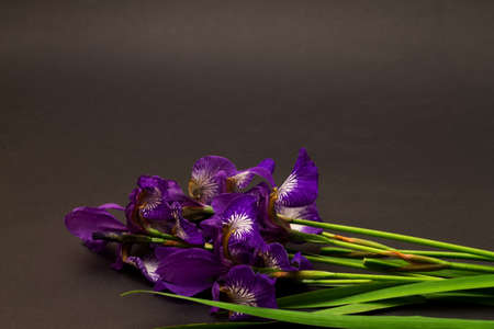 bouquet of of violet iris flowers on a dark background