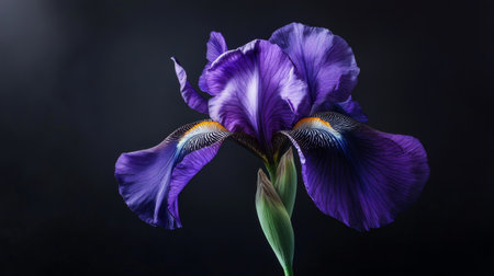 Purple iris flower on dark background, close-up shot. Nature and botanical beauty concept