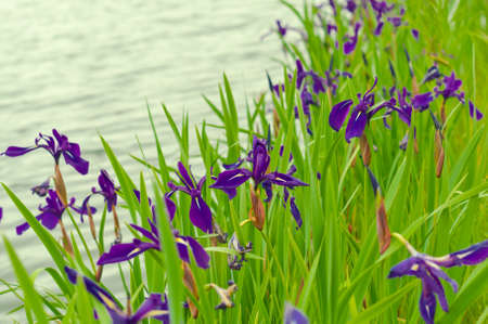 Lake with wild iris flavors at Far East Russia