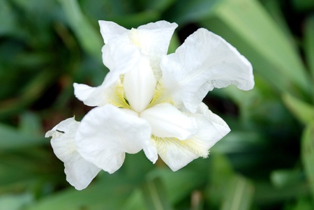White varietal iris in garden. Summertime. Close up