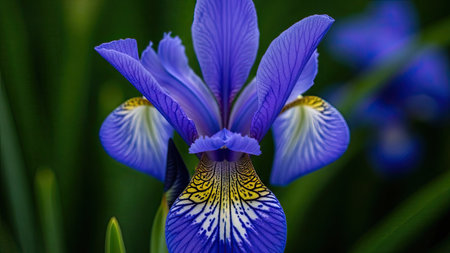 Blue iris flower close up. Shallow depth of field.