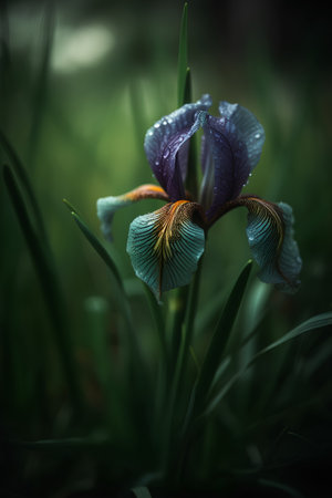 Wild Iris on a green dim background