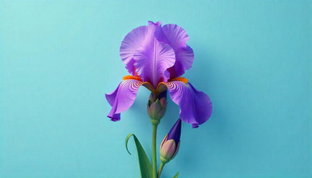 Elegant purple Iris flower on a light blue backdrop