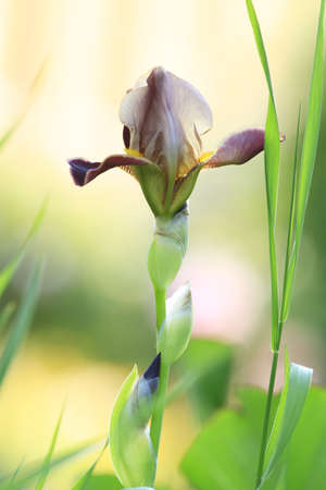 Beautiful iris flower in the garden. Soft focus, shallow DOF.