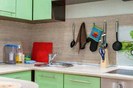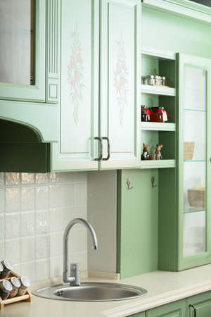 Photo of the kitchen in green colors