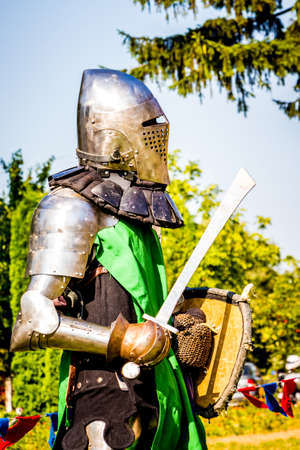 MINSK, BELARUS - JULY 19, 2014: Historical restoration of knightly fights on festival of medieval culture. Knight participant