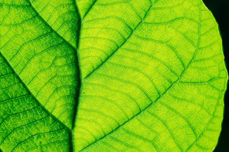 Juicy green leaf texture closeup, nature beauty background.