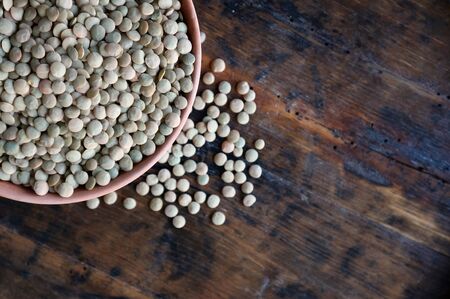 Lentils. Lentils background. Green lentils pattern. Natural organic lentils for healthy food.