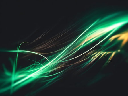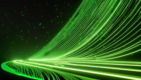 3d render abstract wallpaper green neon lines over black background streaming energy particles falling down and leaving glowing tracks