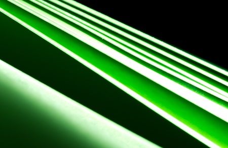 Bright and unusual photos of thin glowing wires, lime, yellow, green burning wire in the dark. Green neon lines on a black background. Computer generated abstract background.