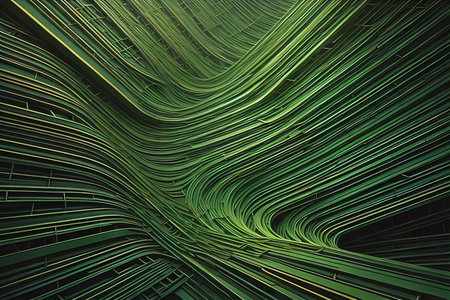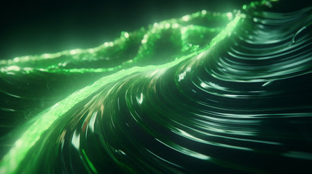 An AI generated illustration of Abstract green wave patterns with smooth lines and curves on a dark background, suitable for backgrounds or wallpapers