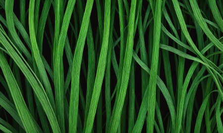 A close-up view of tall, green grass blades, showing their intricate texture and natural beauty