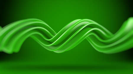 abstract green wavy silk on white background. 3d illustration