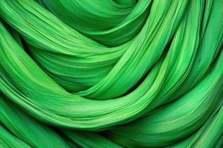Green showing vibrant green metallic ribbons twisted into an abstract shape with a dark blurred background.