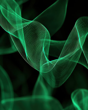 Soft green wave patterns dance gracefully against a dark background, creating an ethereal and modern atmosphere perfect for design projects or creative works.