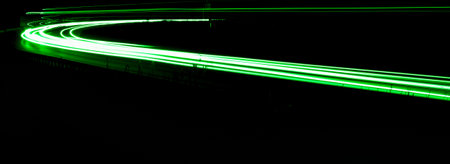 green car lights at night. long exposure