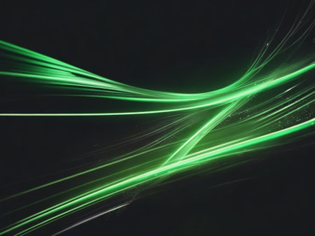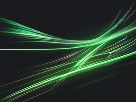 abstract background with green light lines and blurred bokeh effect