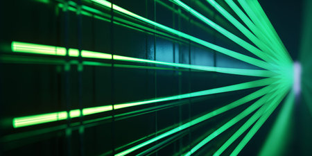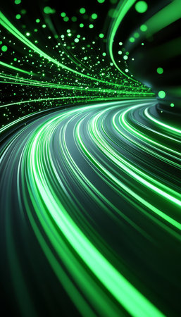 Futuristic Green Laser Beams Creating a Dynamic Light Tunnel on Dark Background.