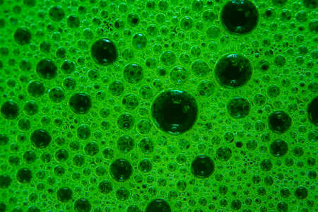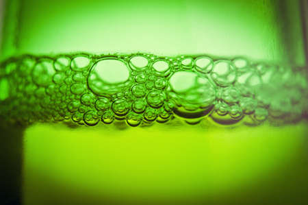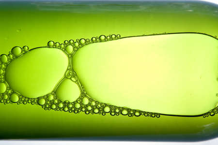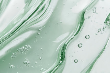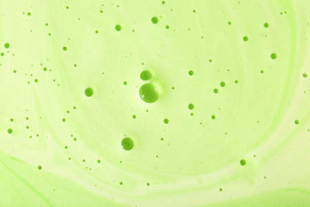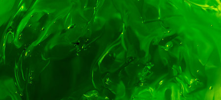 Shot showing close up macro shot of vibrant green gel with bubbles and wavy textures. resolution