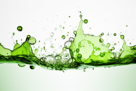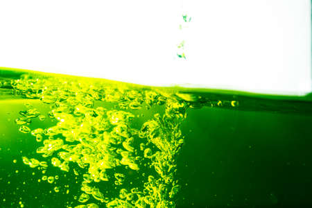 Water wave, close up of vibrant green liquid with bubbles, capturing dynamic movement and freshness. Perfect for backgrounds, beverages, or abstract concepts. soft drink