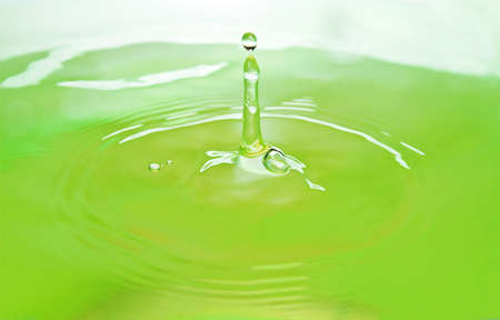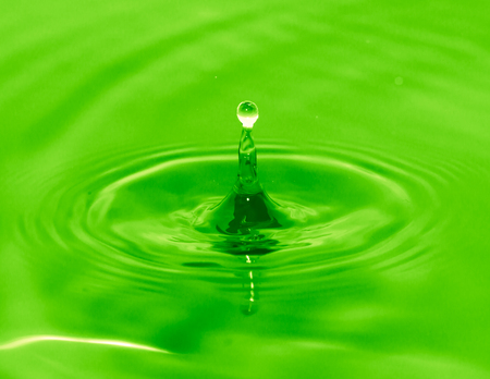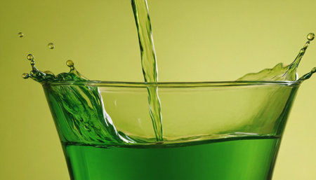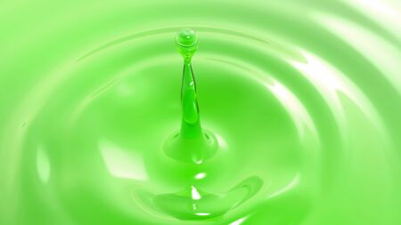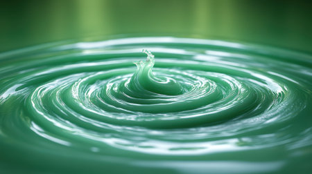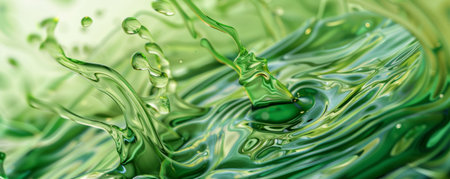 Green liquid splash with dynamic ripples, close-up view. Abstract fluid art and motion concept