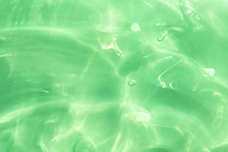 Green gel texture of organic cosmetic care product. Hair gel or face mask.