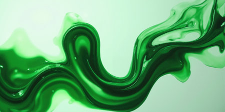 Abstract Fluid Art Background with Delicate Green Waves, Dynamic Flow, and Soft Gentle Gradient