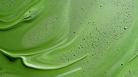 This image showcases a closeup of a vibrant green cosmetic serum with a bubbly texture, emphasizing themes of vitality, wellness, and the benefits of organic skincare for beauty and health