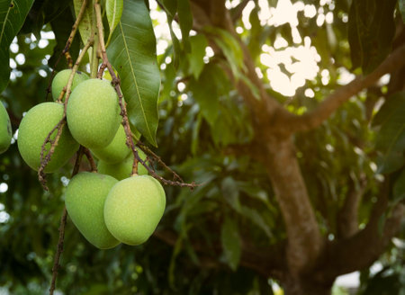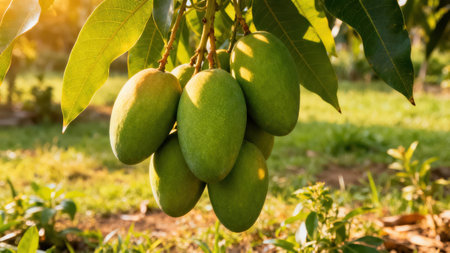 Mango fruit on mango trees, mango tree cultivation and agriculture and sustainability in life