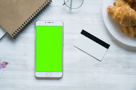 Smartphone screen isolated on green background.